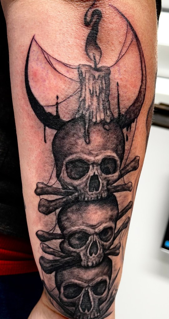 In 2011, Erik and his brother Nick expanded Cryptic Ink Tattoo Studio, where Erik’s talents continued to flourish. Beyond tattooing, he has crafted haunted attraction props and is currently developing “The Grave Escape,” an escape room experience under the Cryptic Ink brand.